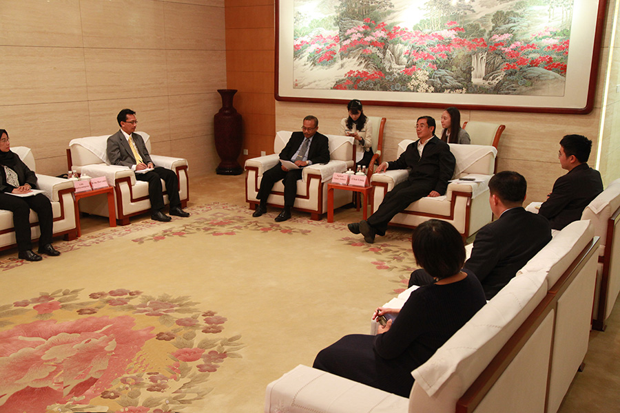 2017年10月16日,环境保护对外合作中心主任陈亮在履约大楼会见了印度尼西亚工业部工业研究与发展局局长那甘·第姆尔·安达拉先生。