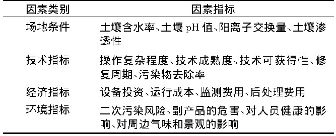 表3 污染场地修复技术筛选影响因素Table 3 The selected influencing factors of remediation technique for contaminated site
