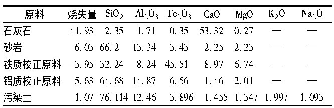 表7 原料及污染土成分分析Table 7 Compositions of raw materials and contaminated soil