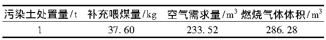 进行污染土处理的水泥厂产量为5 000 t/d, 由于所含污染物为有机物, 因此采取从分解炉高温点入窑的方式进行处置。由于污染土本身含有一定水分, 蒸发时会吸收热量, 所以需要补充燃煤以稳定污染土入窑引起的温度波动;水分蒸发和补充的煤燃烧产生的烟气增加了预热器出口空气排放量。根据经验设定处置量为300 t/d, 再通过水泥厂现有运行数据 (表5) 计算, 焚烧有机污染土每小时高温风机风量增加7 751.68 m3, 尾排风机风量增加4 857 m3 (表6) 。可以看出:高温风机和尾排风机都有富余量, 增加的风量不会对风机运行造成影响。由表7可知:本场地污染土的成分与砂岩黏土质原料非常接近, Si O2含量甚至超过了原料砂岩, 可以通过调整配料替代部分硅质原料, 但需要控制污染土中碱含量对窑工况的影响, 可以采取两种措施:一是将处置量降低为200 t/d;二是在处置污染土的同时加入高含氯废弃物, 如多氯联苯、废变压器绝缘油等[6]。