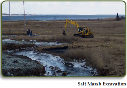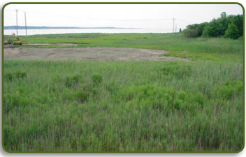 通过飓风堤坝的现有涵洞设计不足,限制了进入北部盐沼的潮汐流。通过堤坝的水量无法维持原有的沼泽,导致了大量的葭莩,以及价值显著降低的生境。清理资金不能用来打开穿过堤坝的涵洞,估计要花费几百万美元来更换涵洞。因此,EPA、USACE和NOAA设计了(1)一个淡水湿地,那里曾经有葭莩,和(2)一个较小的咸水沼泽。